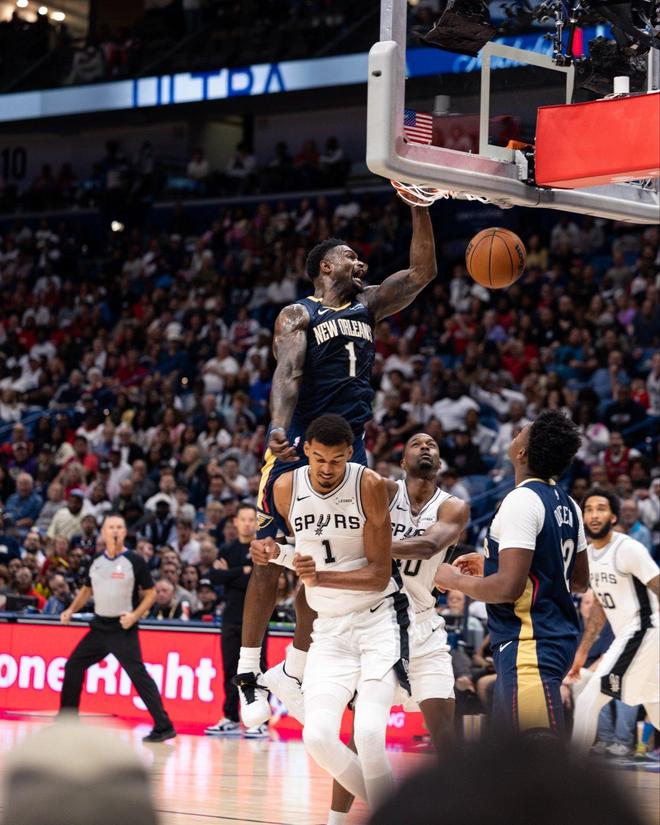 锡安在比赛中,还多次隔扣文班亚马。锡安已经尽力了,可谓是虽败犹荣。