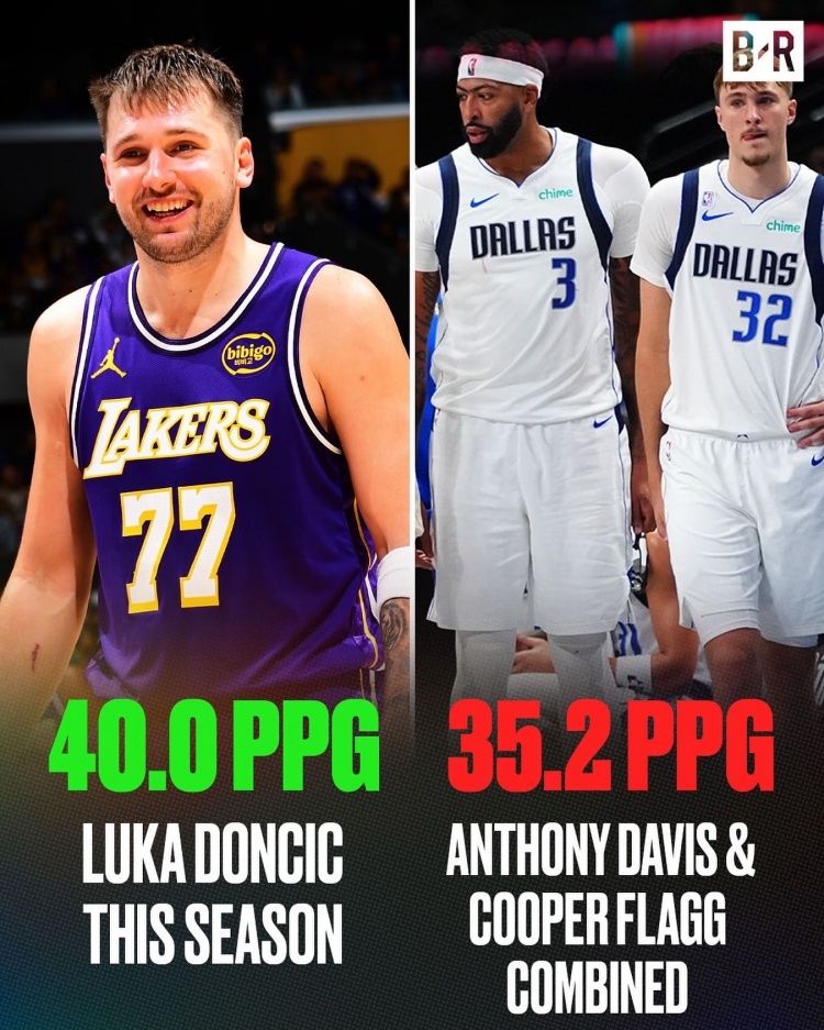 11月7日讯 根据官方数据统计,东契奇赛季至今场均40分,而浓眉则是20.8分,弗拉格则是14.4分。
