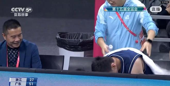 谁注意,广东1人被换下后,陈海涛冲着他微笑:打四川双塔靠你了